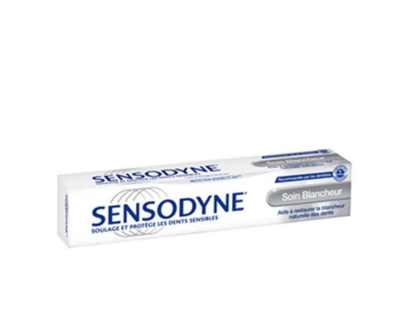 Grâce à sa formule enrichie en sel de potassium, Sensodyne Pro Blancheur Eclat soulage efficacement la sensibilité dentaire en formant une barrière protectrice qui bloque le message douloureux, Utilisé chaque jour, il permet d’éviter le retour de la sensibilité,Sa formule unique en Bicarbonate favorise l’élimination des taches en respectant l’émail de vos dents, et renforce leur blancheur naturelle pour un sourire éclatant,Indications :Sensodyne Pro Blancheur Eclat contient du fluor actif (1400 ppm) qui favorise la réminéralisation de l’émail de vos dents,Dès 3 semaines d’utilisation, vous pourrez constater l’amélioration de votre sensibilité dentaire et retrouver le plaisir de savourer tout ce que vous aimez,Conseils d’utilisation :Conçu pour un usage quotidien trois fois par jour,Non adapté à l’enfant de moins de 6 ans